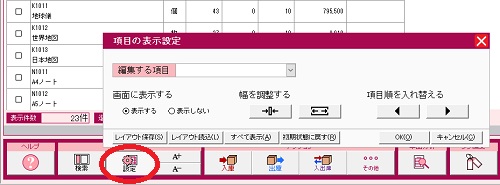 | (1) | 問題が発生している画面左下の[設定]ボタンを押し下げた状態にします。 |