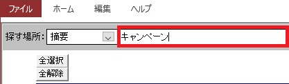 | (2) | 画面上部の[探す場所]を「摘要」(入金・領収一覧の場合は「備考」)に変更します。 |
