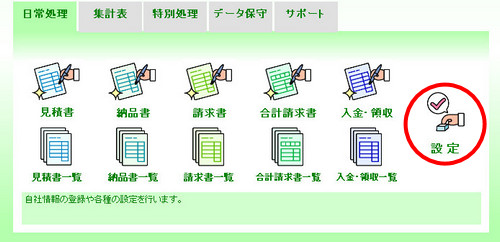 | (1) | メインメニューの[設定]アイコンをクリックします。 |