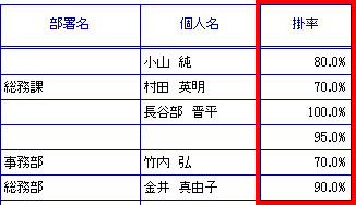 | (3) | 「得意先台帳」画面の一番右側の列に「掛率」が表示されますので、得意先ごとに掛率を入力していきます。(%記号は自動で表示されます) |