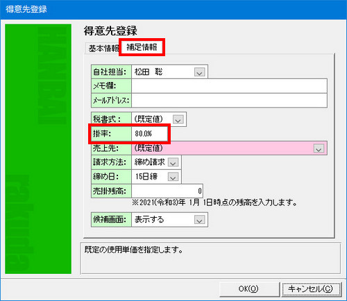| ※「得意先登録」画面の[補足情報]タブ内でも設定が可能です。 |