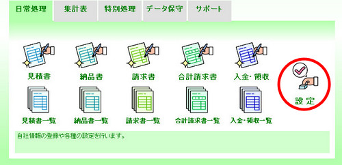 | (1) | メインメニューの[設定]アイコンをクリックします。 |