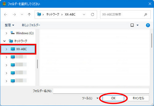 | ※フォルダーの選択画面は、バージョンによって異なる場合があります。 |