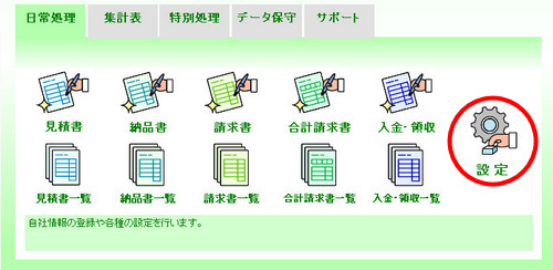| (2 | -6)メインメニューが表示されますので、[設定]アイコンをクリックします。 |