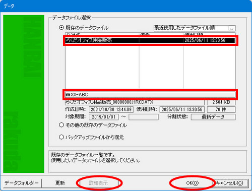 | ※[詳細表示]ボタンをクリックすると、選択したデータファイルのパスを確認できます。 |