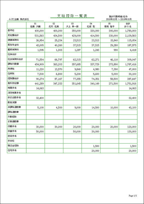 | この用紙は、支給一覧・控除一覧・支給控除一覧・勤怠一覧で印刷できます。 |