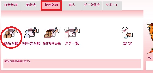 | (1) | メインメニューの[商品台帳]アイコンをクリックします。 |