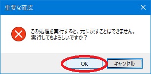 | (6) | 再度確認メッセージが表示されますので、[OK]ボタンをクリックします。 |