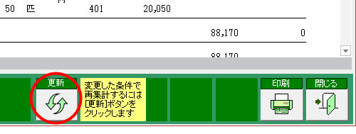 | (2) | 選択後、画面下部の[更新]ボタンをクリックし、集計表を更新します。 |
