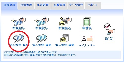 | (1) | メインメニューの[給与参照・編集]アイコンをクリックします。 |