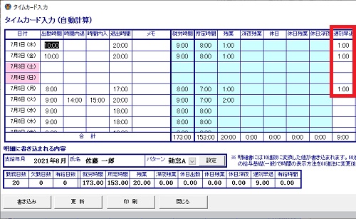 | ※[遅刻早退を自動的に計算します。]のチェックを外した場合は、すでに自動計算されていた時間数が残りますので、必要に応じて削除してください。 |