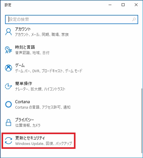 | (2) | 「Windowsの設定」画面内にある、「更新とセキュリティ」をクリックします。 |