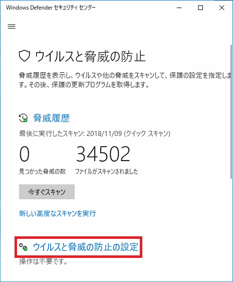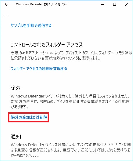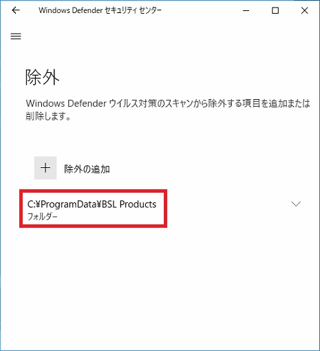 | ※ | 本設定は、Windows Defenderの2018/11/9時点のバージョンにて、弊社で有効性が確認された対処方法です。今後のバージョンアップによっては本設定と異なる対処が必要となる場合がございます。 |