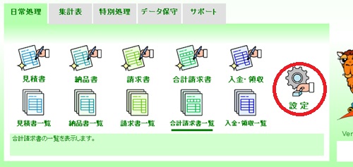| (1) | メインメニューの[設定]アイコンをクリックします。 |