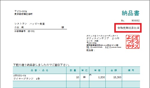 | (3) | [OK]ボタンをクリックして「設定」画面を閉じ、伝票の印刷プレビュー画面で日付欄をご確認ください。 |