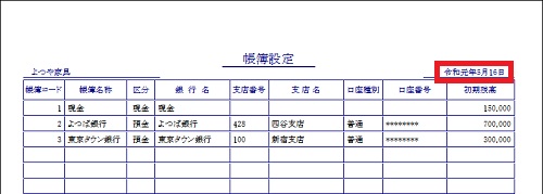| (3) | [OK]ボタンをクリックして「設定」画面を閉じ、帳簿などの印刷プレビュー画面で日付欄をご確認ください。 |