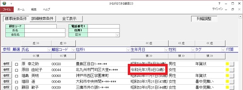| (3) | [OK]ボタンをクリックして「設定」画面を閉じ、「顧客一覧」などの画面で令和元年で表示されることをご確認ください。 |