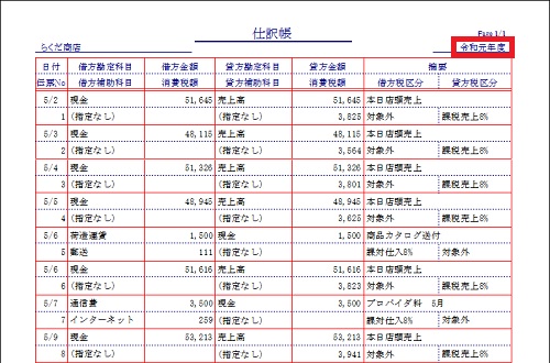 | (3) | [OK]ボタンをクリックして「設定」画面を閉じ、台帳などの印刷プレビュー画面で日付欄をご確認ください。 |