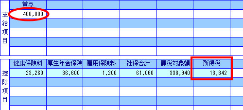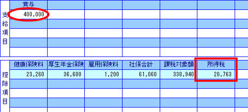 | 賞与額が同一であっても、各社員の所得税額が異なる場合があります。 |