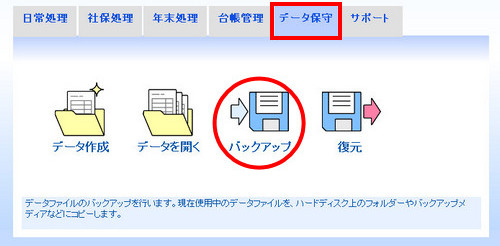 | ※データファイルが複数ある場合は、データファイルを切り替えて1ファイルずつバックアップを行ってください。 |