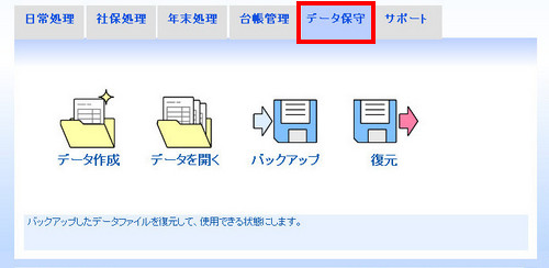 | (2- | 2)メインメニューの[データ保守]タブにある[復元]アイコンをクリックします。 |