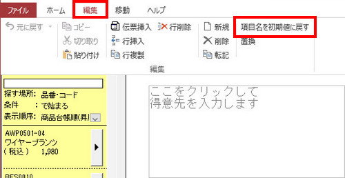 | 項目名を変更した後、初期状態に戻したい場合は、[編集]メニュー内の「項目名を初期値に戻す」をクリックします。 |