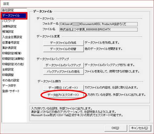 | 出力されたファイルは、各種の会計ソフトで利用できます。 |
