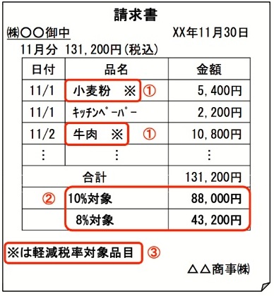 | @ 軽減税率の対象品目に「※」などを記載 |