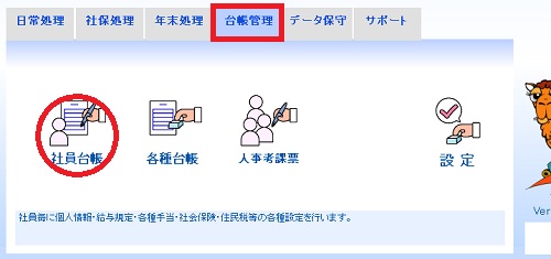 | (1) | メインメニューの[台帳管理](「かるがるできる給料」の場合は[日常処理])タブ→[社員台帳]アイコンをクリックします。 |