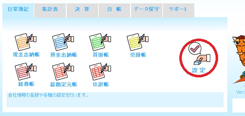 | (1) | メインメニューの[設定]アイコンをクリックします。 |
