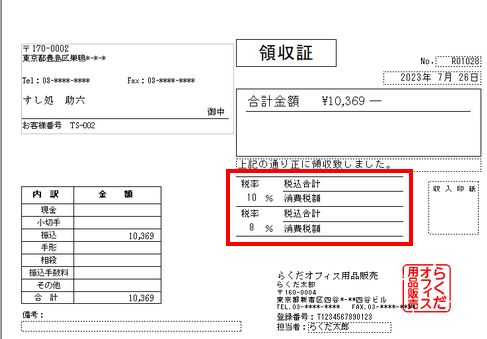 ●領収証に標準税率および軽減税率の消費税額欄を追加 |