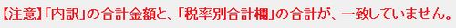なお、内訳金額の計と赤枠内の金額の計が一致していない場合は、画面上部に下記の警告メッセージが表示されます |