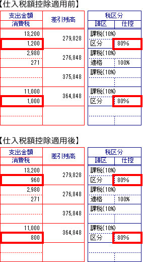| (3) | 入力済み明細のうち、「仕控」が「80%」となっている明細行の「消費税額」の金額をご確認ください。 |