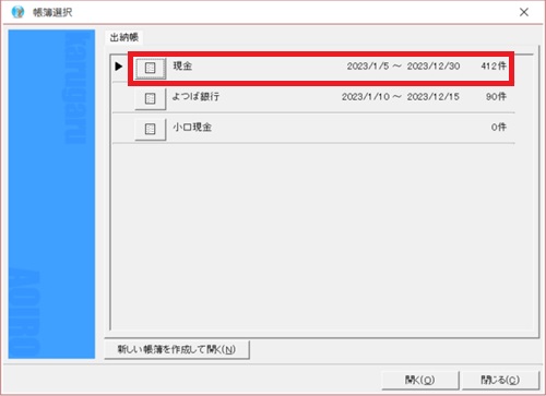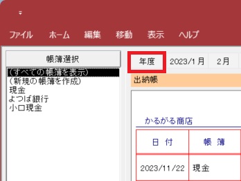 | (3) | メインメニューの[出納帳]アイコンをクリックし、任意の帳簿を開きます。 |