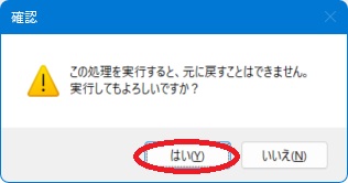 | (12) | 再度確認メッセージが表示されますので、[はい]ボタンをクリックします。 |