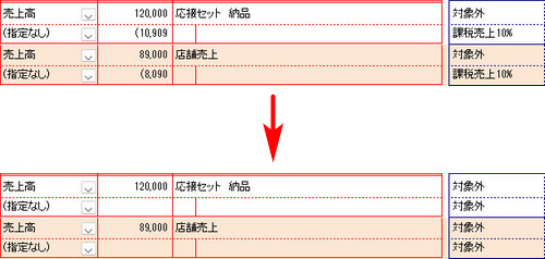 | (9) | 置換後の各仕訳の[税区分]と[消費税額]の金額が変わっていることをご確認ください。 |