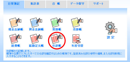 | (1) | メインメニューの[仕訳帳]アイコンをクリックします。 |