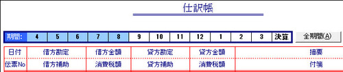 | (2) | 仕訳帳画面上部の期間選択バーで、税区分を変更したい期間をドラッグして選択します。 |
