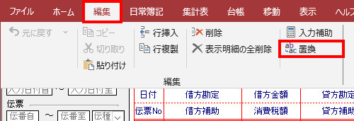 | (3) | 画面上部の[編集]メニューをクリックし、[置換]をクリックします。 |