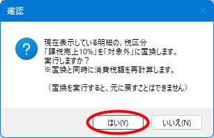 | (7) | 再度確認メッセージが表示されますので、[はい]ボタンをクリックします。 |