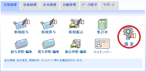 | (1) | メインメニューの[設定]アイコンをクリックします。 |