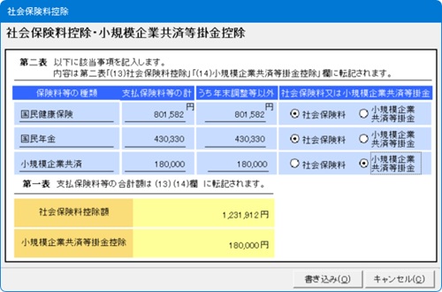 確定申告書第二表の社会保険料控除欄に4行以上入力するには?