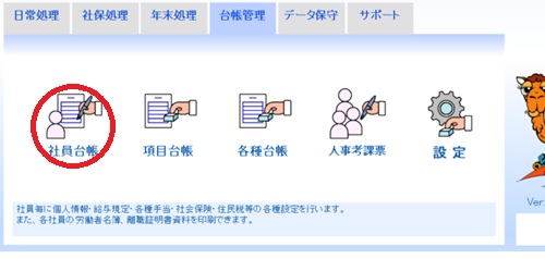 | (1) | メインメニューの[社員台帳]アイコンをクリックします。 |