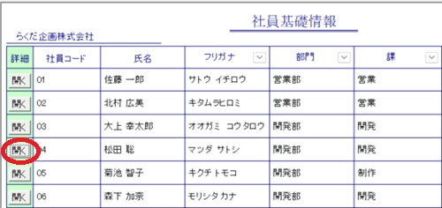 | (2) | 「社員基礎情報」画面で、設定を行う社員の[開く]ボタンをクリックします。 |