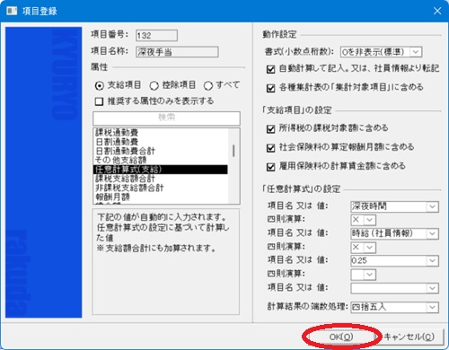 | 深夜手当の項目を作成し、自動計算することはできますか? |