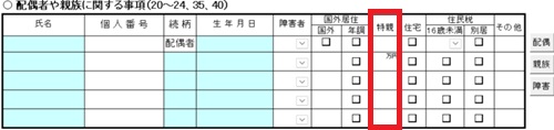 | また第二表の「配偶者や親族に関する事項」に「特親」の欄が追加されています。 |
