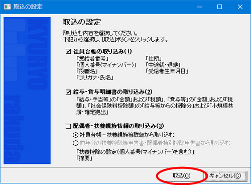| ※「給料らくだプロ8」の場合は[社員氏名]欄の右にある[取込]ボタンをさらにクリックしてください。 |